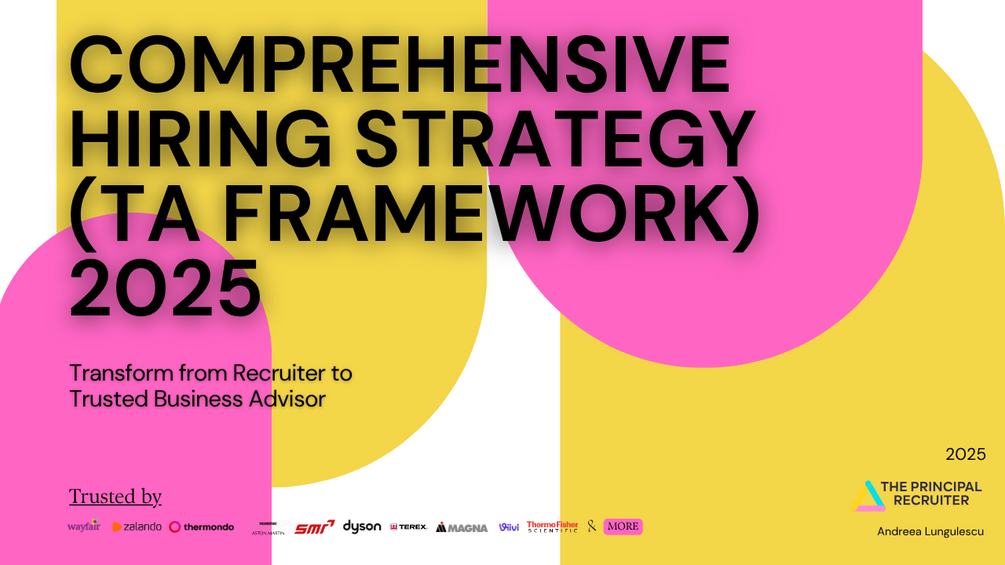 Andreea Lungulescu - for the past 15+ years in TA, I've worked with companies from Zalando, Wayfair, Thermondo, Aston Martin, JCB, Dyson, and Airbus to Satellite Talent, Parloa, Staffbase,Viivi, etc. This framework is my so called “intake” sheet - but done properly :).